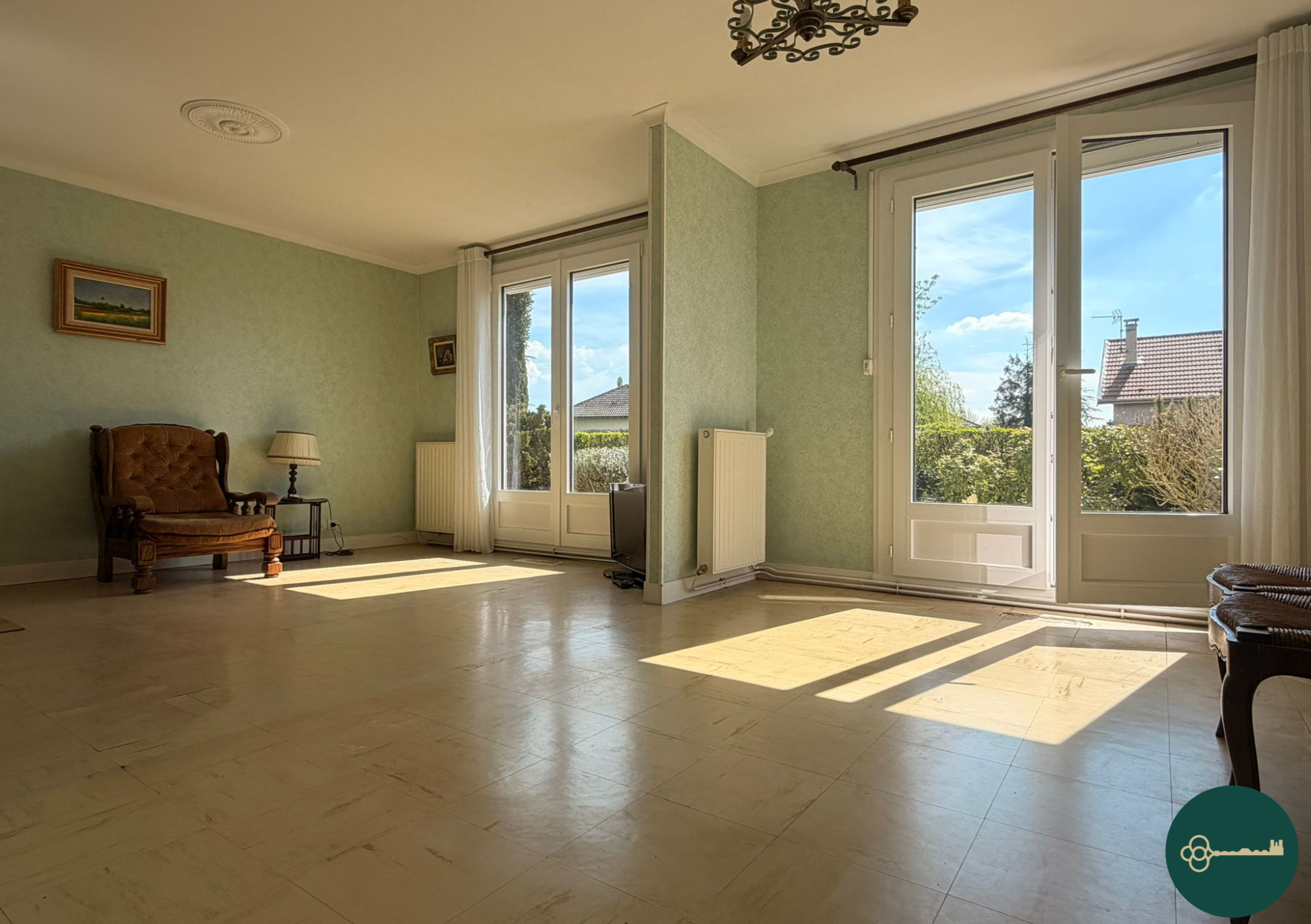 Travaux récents : ravalement de façade en août 2025, toiture révisée en mai 2024, chaudière gaz à condensation en février 2021, fenêtres PVC avec volets roulants électriques en janvier 2019. Remise au goût du jour à prévoir.